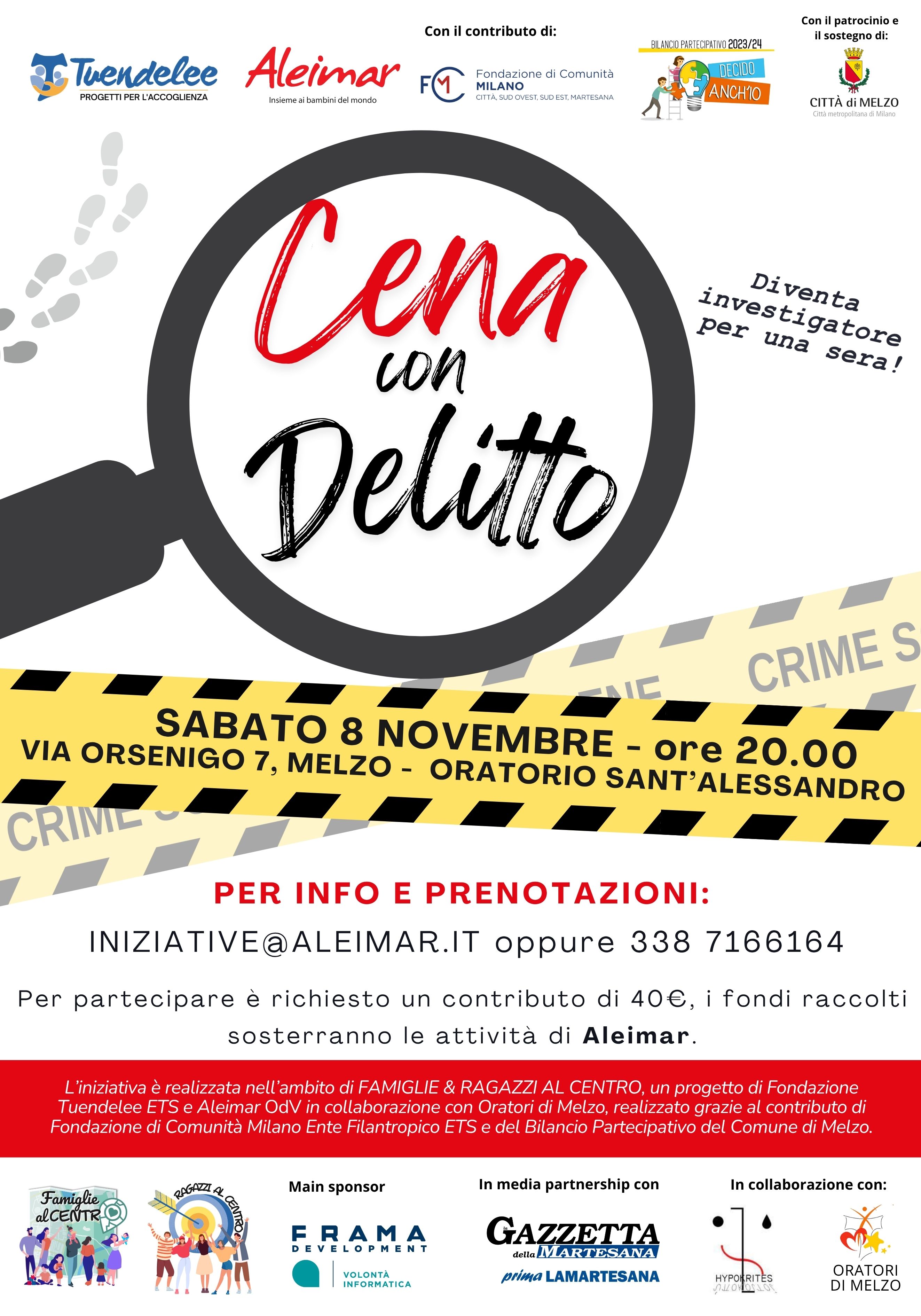 Prenota ora il tuo posto al link: https://sostieni.aleimar.it/cena_con_delitto/