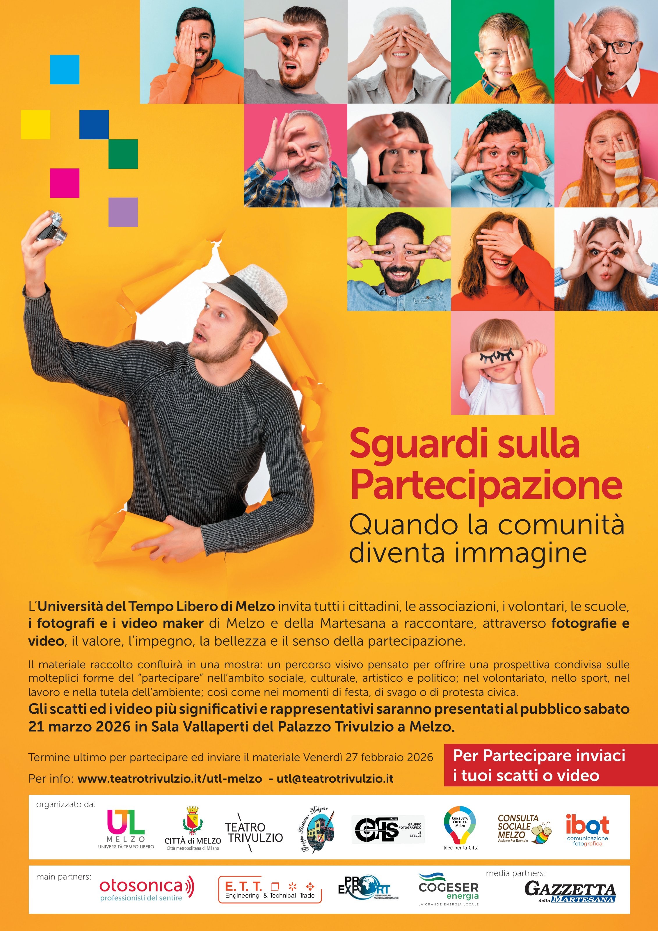 L’Università del Tempo Libero di Melzo invita tutti i cittadini, le associazioni, i volontari, le scuole, i fotografi e i video maker di Melzo e della Martesana a raccontare, attraverso fotografie e video, il valore, l’impegno, la bellezza e il senso della partecipazione.