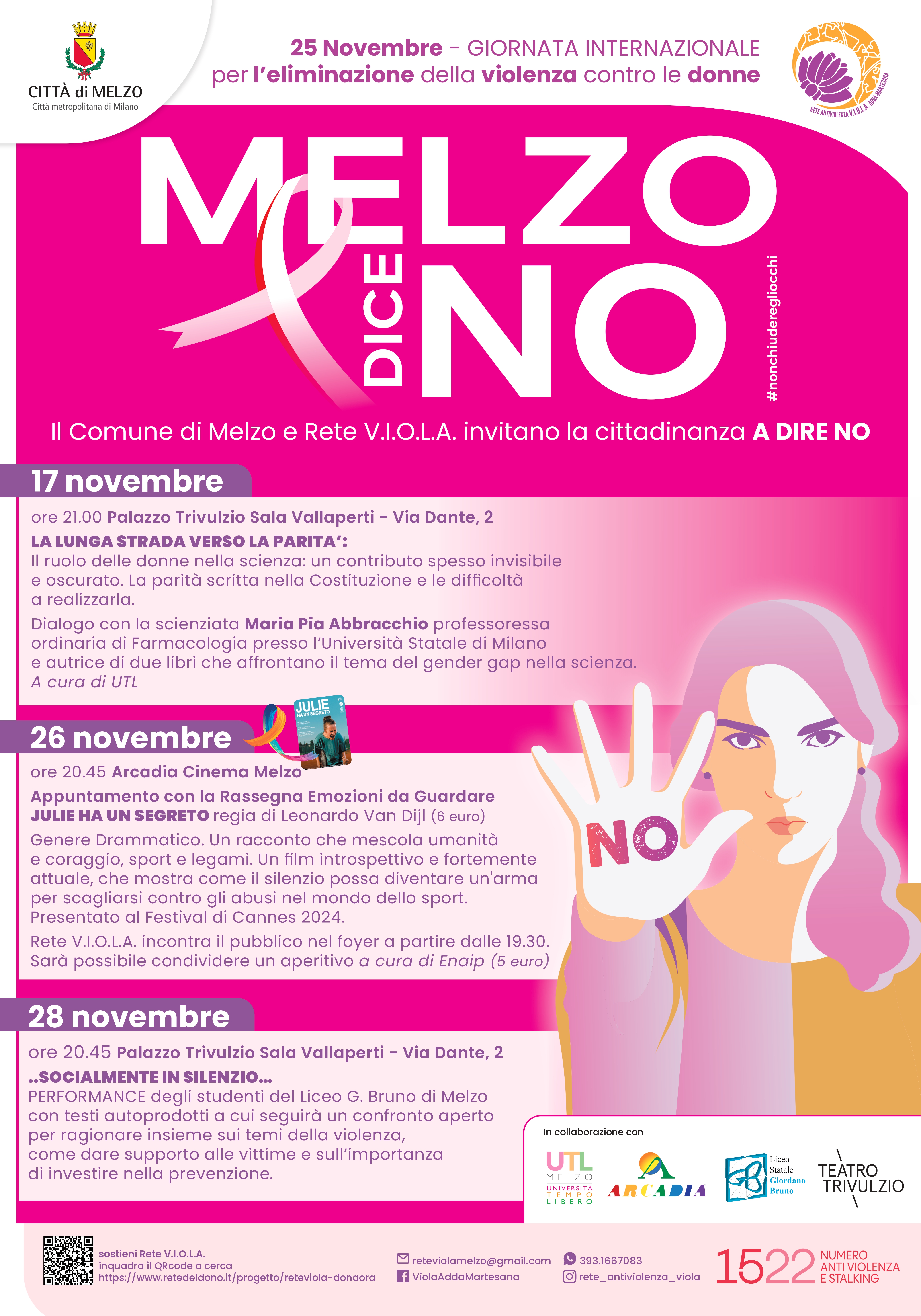 25 novembre: Giornata internazionale contro la violenza sulle donne. Il Comune di Melzo e la rete V.IO.L.A. invitano la cittadinanza A DIRE NO